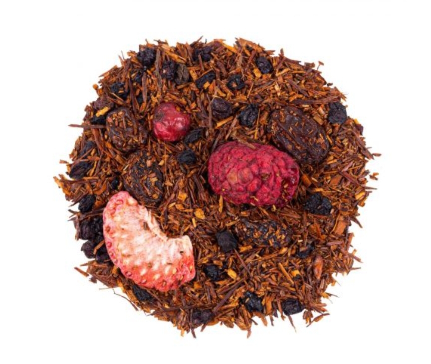 Ingrédients: pomme, hibiscus, cynorrhodon, baies de sureau, ananas, raisin, arôme naturel, fleurs de souci, framboise, groseille, cassis