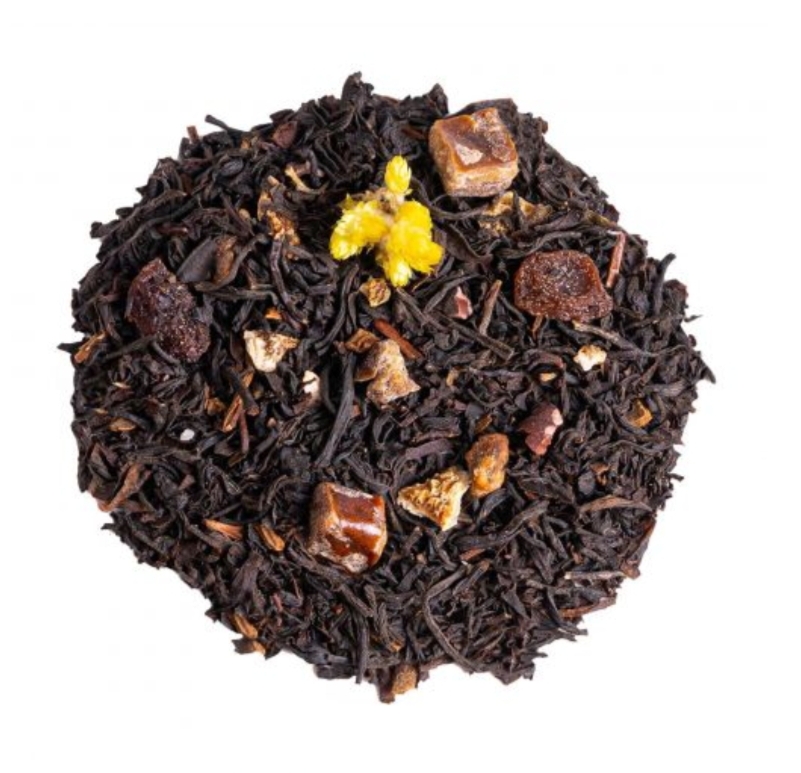 Ingrédients: thé noir Assam, Inde du Sud, datte, raisin, arôme naturel, écorces de cacao, bâtons de cannelle, figue, écorces de citron, fleurs d’immortelle, échinacée pourpre